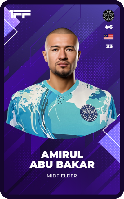 Amirul Abu Bakar, a 33-year-old Malaysian central midfielder from Balok, Kuantan is one of Inter Nusantara's top passers. He plays a key role in dictating the game in the middle of the pitch, helping his team maintain control and create scoring opportunities. Off the pitch, Abu Bakar is a quiet and reserved individual. He is married to a professional ten-pin bowler and shares her passion for the sport. In his free time, he enjoys bowling and finds it to be a relaxing way to unwind. Abu Bakar is pleased to be playing for Inter Nusantara, which is relatively close to his home country of Malaysia. He is also a big fan of taekwondo and competed in numerous competitions in his younger days. Now, he practises taekwondo to stay fit and maintain his mental and physical balance. His dedication and discipline both on and off the field make him a valuable member of the team.