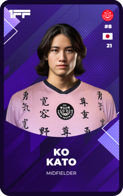 Ko Kato is a talented young Japanese footballer who has quickly made a name for himself as the star of the Tokyo Youth Club. At just 21 years old, he already has a natural ability on the pitch. His passing, shooting, and vision make him a formidable opponent, and he is particularly dangerous from set plays. Kato is also a natural leader, often taking charge on the field and guiding his teammates to victory. He wears the number 8 jersey and has a passion for music, with YOASOBI, Black Pink, and BTS being some of his favourite artists. Outside of football, he is a fan of LA Angels' MLB player Shohei Ohtani and enjoys watching shows like BlueLock, Detective Conan, and Roppongi Class. Born in Shizuoka, Kato moved to Europe with his family at the age of six and lived in London for eight years before returning to Japan and settling in Setagaya.
