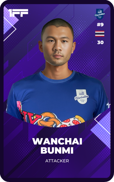 Wanchai Bunmi is a 30-year-old Thai footballer born and raised in Bangkok. He currently lives in Tokyo and plays as a striker for Tokyo Youth Club at One Future Football. Bunmi wears the number 9 jersey and is known for his speed and skill on the ball. Despite his impressive talents, Bunmi is known for his finishing ability and is often used as a substitute. In Thailand, Bunmi is a hero and has a large following of fans. He is known to be very superstitious and often follows rituals before games to bring him good luck. In his free time, Bunmi loves hiking in the mountains around Tokyo and can often be found walking his dog. He is also a huge fan of Thai pop stars and often attends concerts.